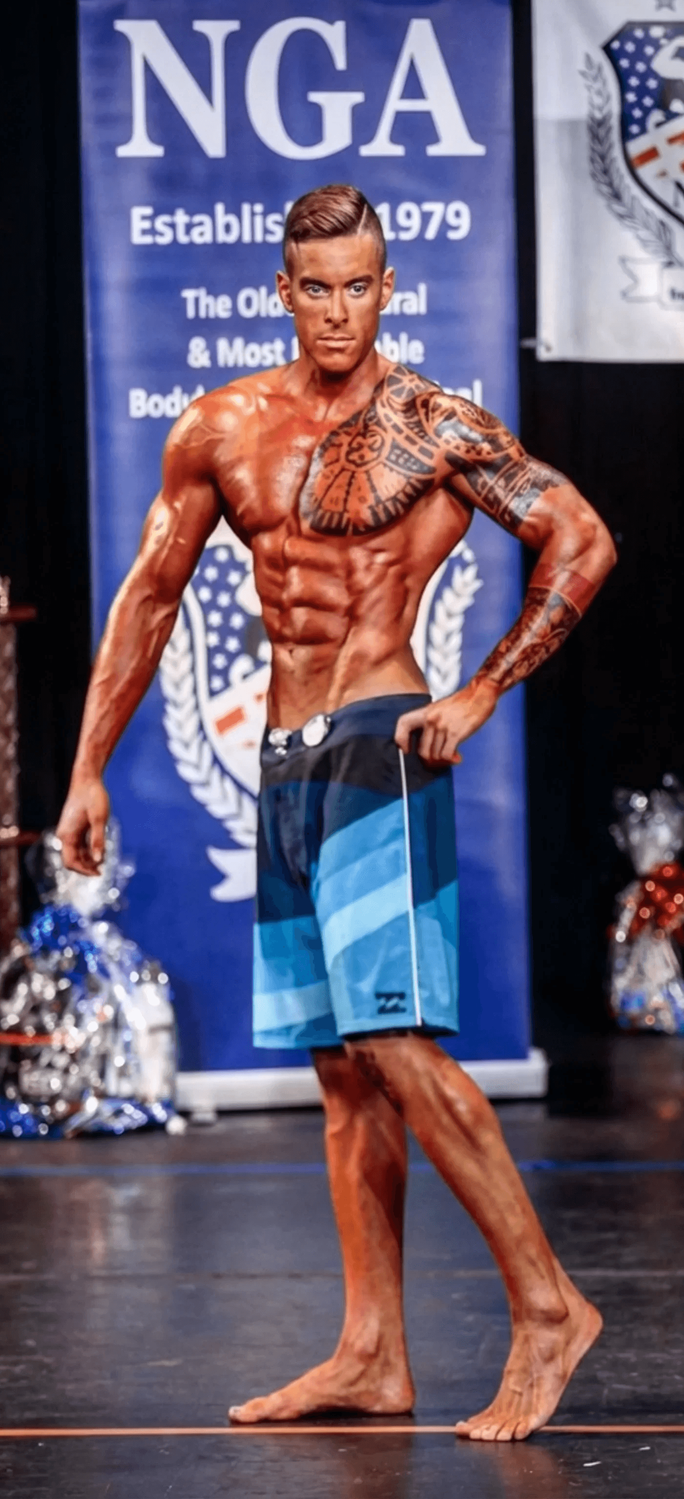 Ho iniziato ad allenarmi a sedici anni per recuperare da un infortunio al ginocchio. Doveva essere riabilitazione, è diventata la mia vita. Ho studiato Scienze Motorie, ho gareggiato come natural fino a vincere il titolo NGA Mister Universe a Miami nel 2016, preparandomi da solo, senza sponsor e senza coach.